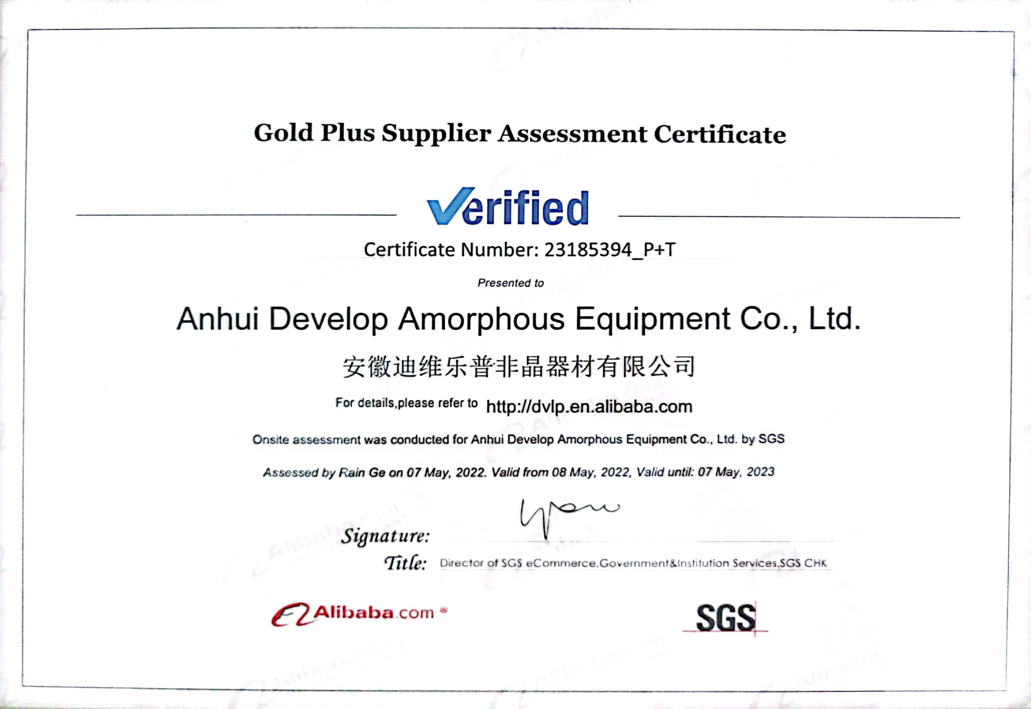 • SGS質量體系證書